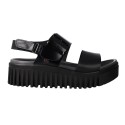 Die breite Plateaufläche sorgt für gute Stabilität. Die Schnalle ermöglicht eine präzise Anpassung an der Ferse und bietet dauerhaft sicheren Halt. Ideal für lange Tage in der Stadt oder auf Reisen.