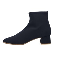 Die Barminton 10030 sind elastische Sock-Boots für Damen in Marine mit mittlerem stabilen Absatz, minimalistischem Design und schmal zulaufender Spitze. Sie passen sich dem Knöchel an und sind bequem für Büro, Events und Alltagslooks.