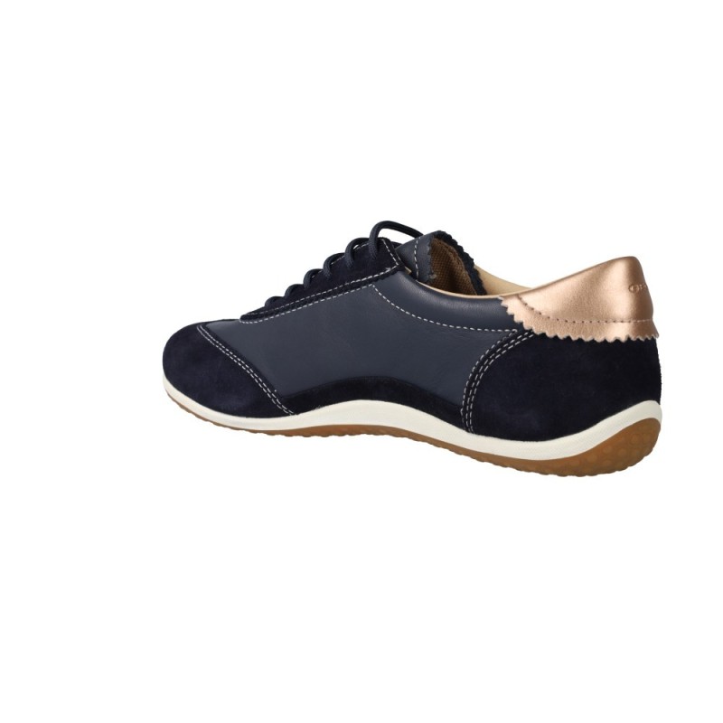 REF:21400640-36-NAVY/BLUEDie Geox D Vega A D3509A sind elegante Damen-Sneaker, die Stil, Komfort und modernste Atmungsaktivitätstechnologie vereinen. Mit einem raffinierten Design in Marineblau und roségoldenen Akzenten sind sie ideal für Frauen, die ein vielseitiges, funktionales Schuhwerk mit einem Hauch von Eleganz suchen.