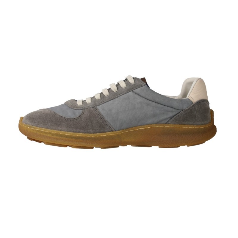 This design takes clear inspiration from retro running trainers. Grey suede is paired with pale sky-blue technical fabric, navy leather overlays, cream laces and the signature honey-toned natural rubber sole seen across much of the El Naturalista collection. The result is a premium-looking trainer that ages beautifully and works just as well in the city as on easy countryside walks.