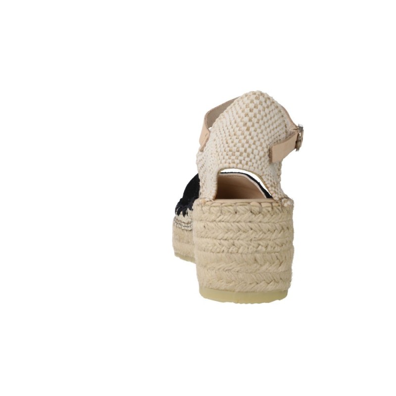 The mix of natural espadrille-style base and upper tones such as sky blue or black creates a balanced, easy-to-style look suitable for both casual outfits and more polished summer combinations.