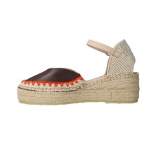 The contrast between the brown leather-effect upper and the orange embroidered detail adds a distinctive character, making this model stand out from more conventional espadrilles. It’s designed for women who want more than comfort — they want identity and style in one piece.