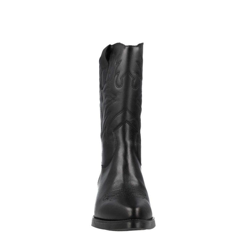 El diseño es de caña media y el ancho es estándar para una bota tejana que debe calzarse sin cremallera. Está diseñada para un ajuste cómodo sin ser excesivamente holgada, manteniendo la forma elegante del modelo.