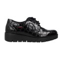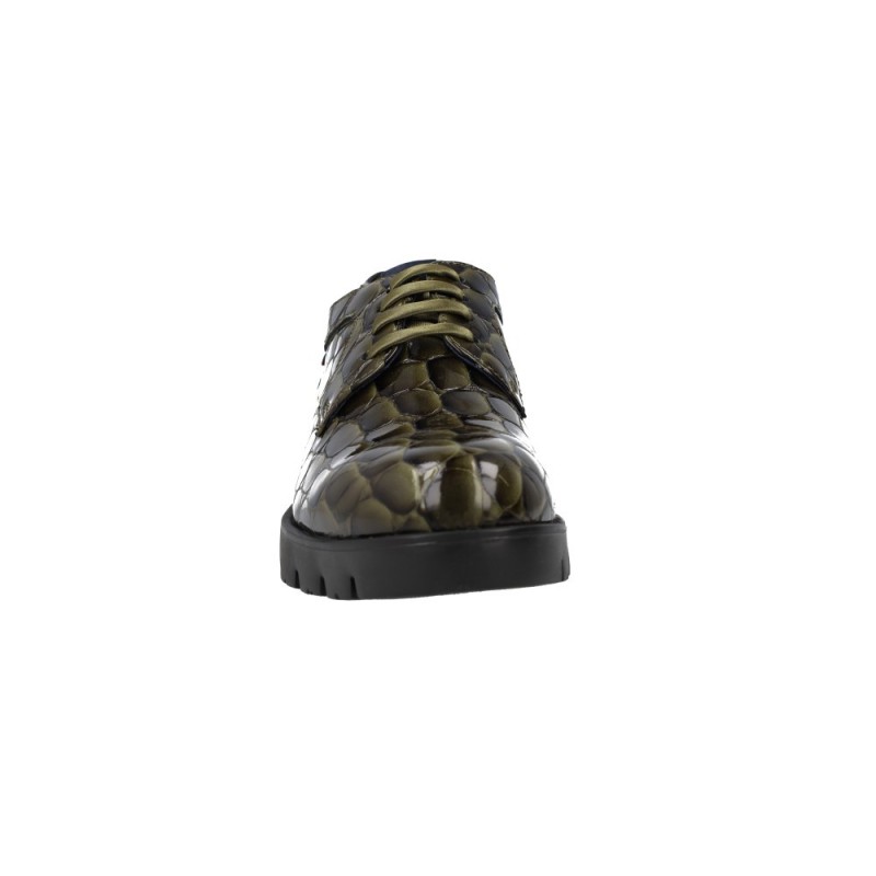 El modelo Bari 58515 destaca por su diseño sofisticado con acabado brillante, que refleja la luz con elegancia y resalta la textura tipo cocodrilo. Su silueta de cordones clásicos se fusiona con una suela moderna de volumen medio, logrando un equilibrio entre lo atemporal y lo actual.