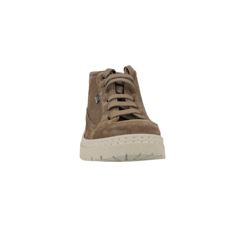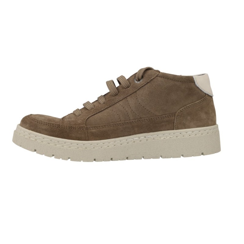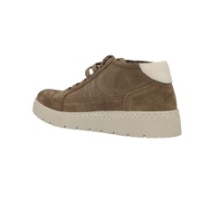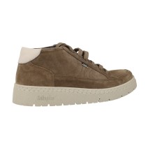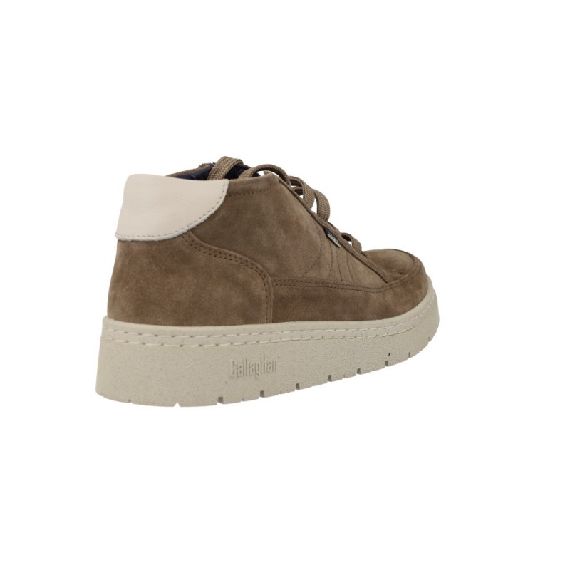 El exterior de los botines Callaghan 55816 Petete Sra está confeccionado en piel nobuck, un material que no solo aporta un acabado sofisticado, sino que también garantiza resistencia y durabilidad. Su tono marrón cálido, combinado con detalles en beige en la parte trasera, crea un diseño equilibrado que se adapta tanto a looks casuales como a conjuntos más elegantes.