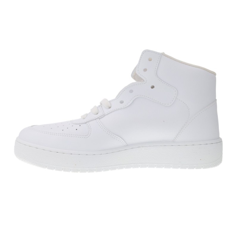 Confeccionados en materiales sintéticos de alta calidad, estos botines destacan por su diseño limpio y elegante. Su color blanco total aporta un aire fresco y moderno, mientras que el corte medio ofrece un soporte extra al tobillo, ideal para caminar con confianza. Los detalles perforados y las costuras decorativas en los laterales le dan un toque único que realza cualquier outfit.