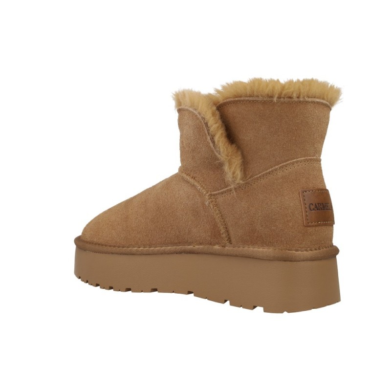 REF: 20401596-36-CAMELLos Carmela 162633 Botines Australianas Pelo Mujeres son una opción ideal para quienes buscan abrigo, comodidad y un toque de elegancia en su calzado invernal. Su diseño, inspirado en las clásicas botas australianas, se actualiza con una suela de plataforma ligera que aporta un extra de estilo y mejora la ergonomía al caminar.
