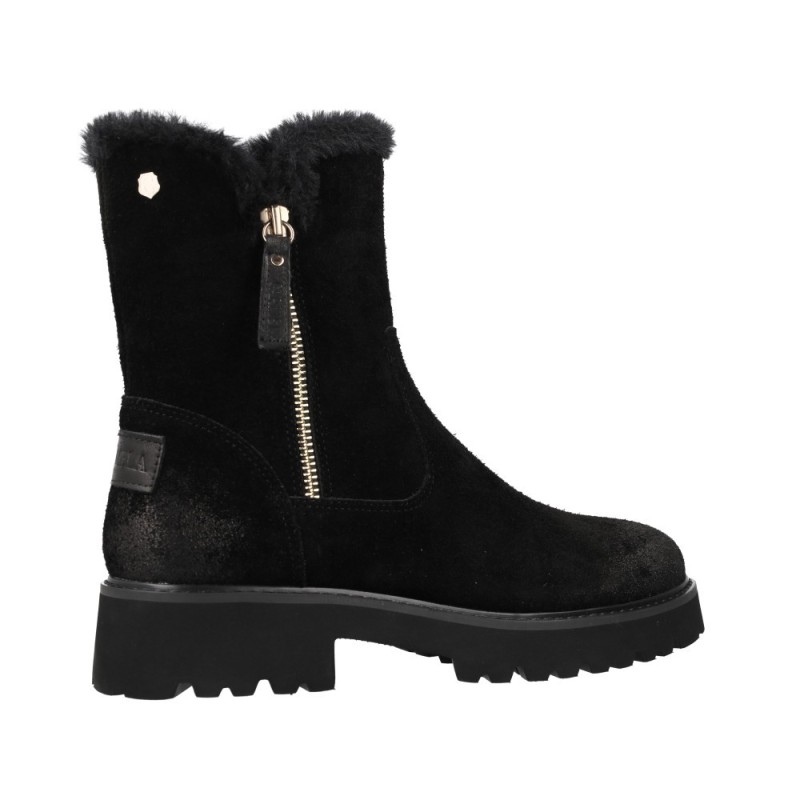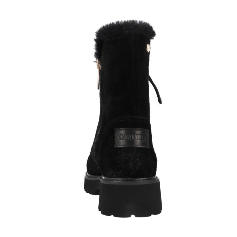 El modelo Carmela 162718 destaca por su diseño limpio, funcional y sofisticado. Su estructura en serraje de alta calidad ofrece una textura cálida y agradable al tacto, mientras que el interior forrado en pelo proporciona una experiencia de suavidad y abrigo inigualable.
