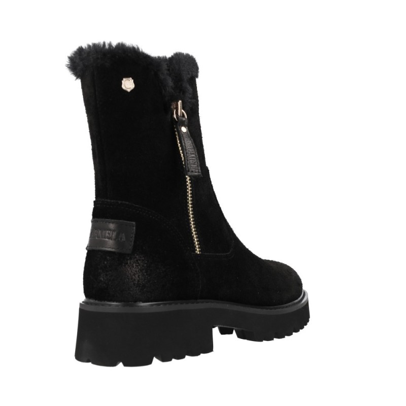 REF: 20301490-37-NEGROLos Carmela 162718 Botines Cremalleras Mujeres son el reflejo del estilo invernal más actual: cálido, funcional y lleno de personalidad. Su diseño con forro interior de pelo sintético garantiza una sensación de abrigo inmediata, mientras que su suela dentada proporciona seguridad y agarre incluso en los días más fríos o lluviosos.