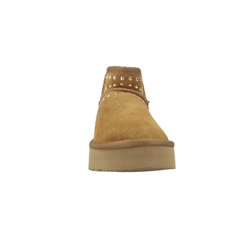 El modelo Agder 76999-P combina el diseño icónico de las botas australianas con detalles modernos que las convierten en un accesorio de moda imprescindible. Las tachuelas metálicas distribuidas estratégicamente sobre el serraje aportan un efecto visual elegante y contemporáneo.