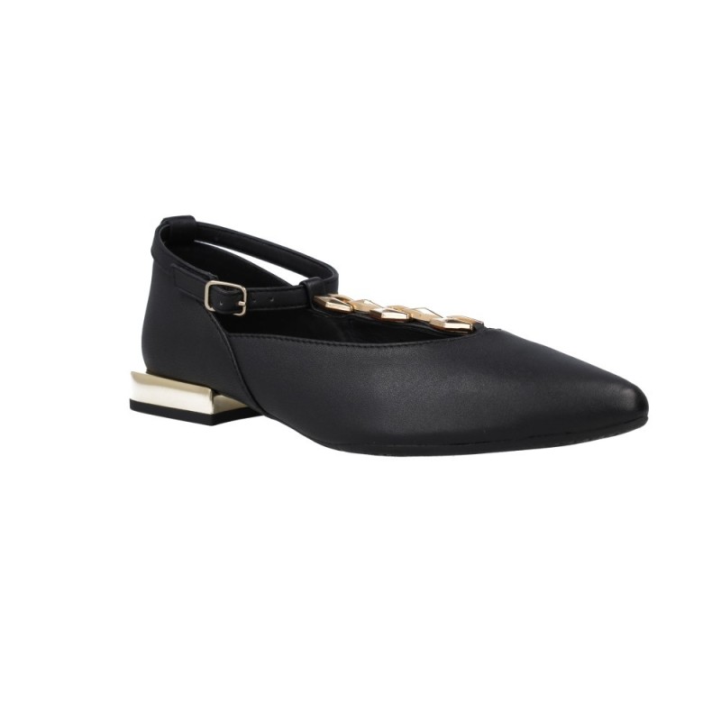 El modelo Elsie 76028 destaca por su silueta elegante, su estructura flexible y su equilibrio visual entre lo clásico y lo moderno. La tira central con cierre ajustable y la cadena metálica dorada confieren al zapato un aire chic y distinguido, mientras que el tacón geométrico con base dorada añade un toque de glamour contemporáneo.