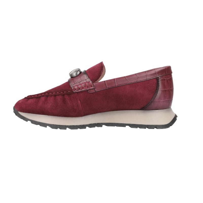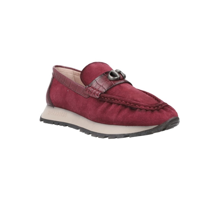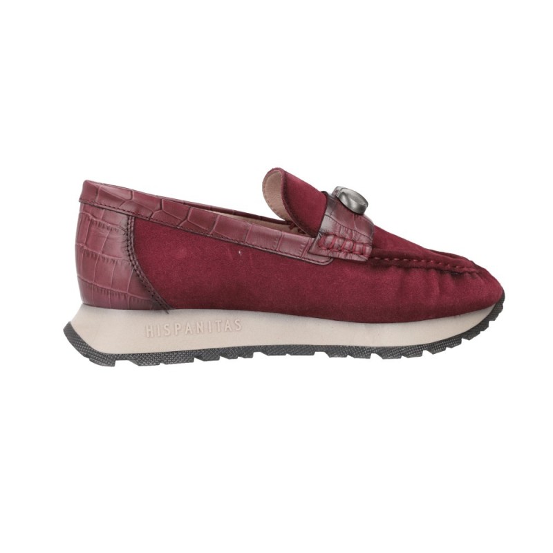 REF: 20700328-37-WINELos Hispanitas Kansas BHI254400 Zapatos Mocasines Mujer reinterpretan un clásico de la moda femenina para adaptarlo a los tiempos actuales. Su diseño elegante, con serraje suave y detalles en piel grabada cocodrilo, los convierte en un calzado sofisticado y contemporáneo.