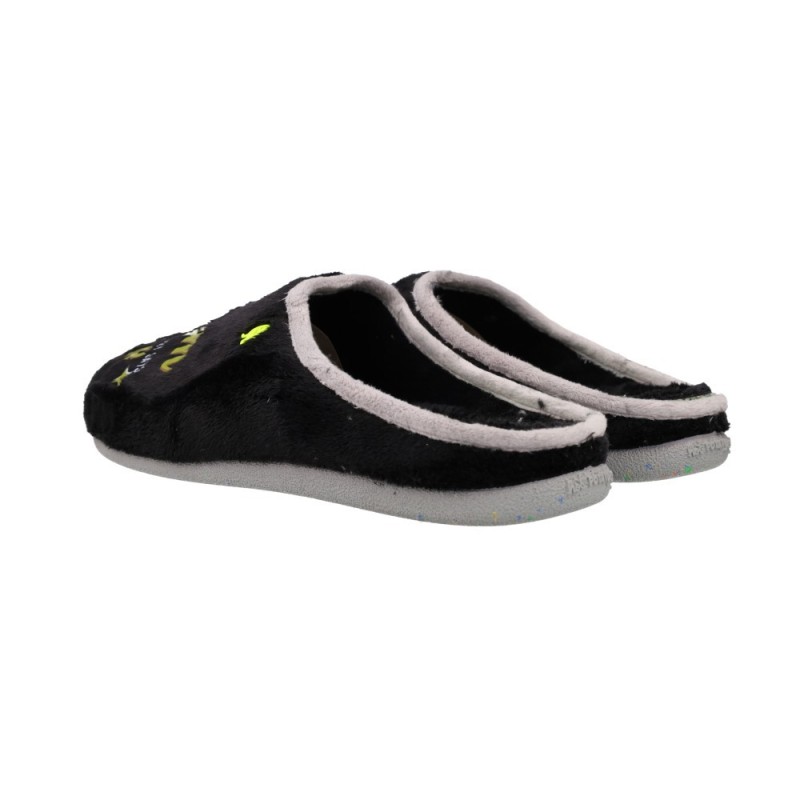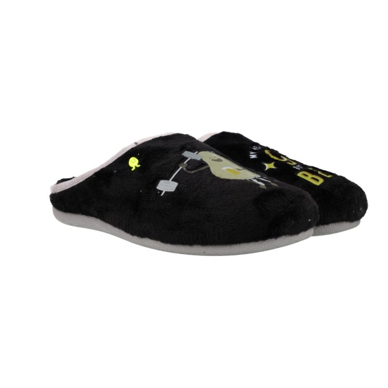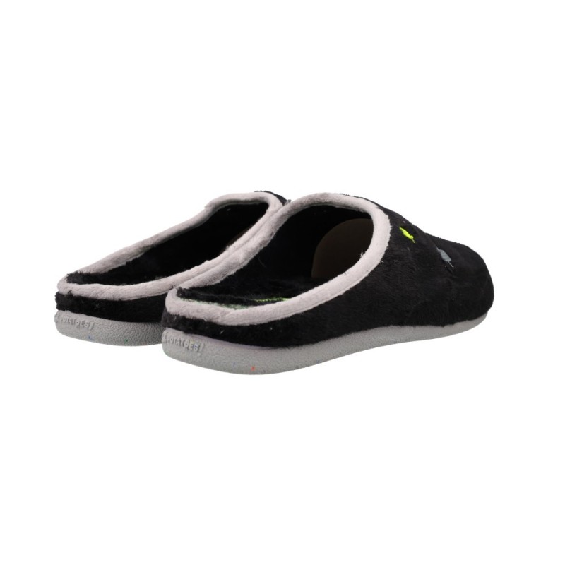 REF: 10900072-41-NEGROLas Hot Potatoes Rutledge 76950 Zapatillas de Casa Hombres son la esencia del confort moderno: suaves, ecológicas y con un toque divertido. Fabricadas en textil tipo peluche reciclado, estas zapatillas combinan la calidez de un forro interior mullido con una suela de caucho natural y goma reciclada que garantiza firmeza y agarre en todo tipo de superficies.