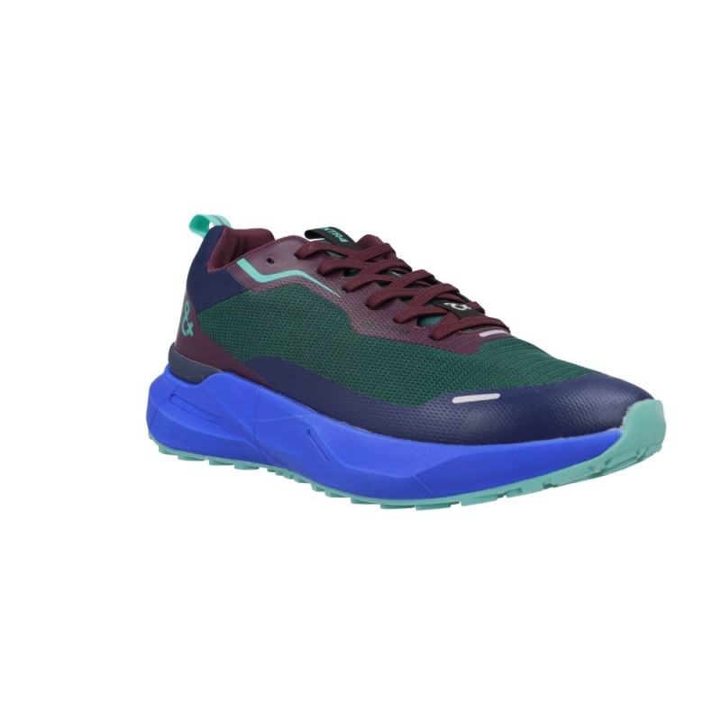 Combinación cromática verde, burdeos y azul intenso, inspirada en la naturaleza y la energía deportiva.