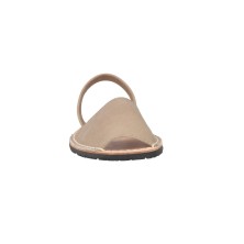 ¿Quieres completamente abierta (tipo chancla)? Esas son flip-flops o chanclas de playa. Las menorquinas son distintas: cerradas, versátiles, formales si hace falta. Si buscas chancla, esto no es para ti.