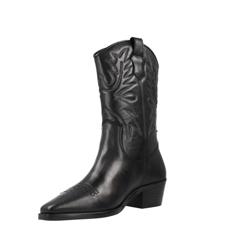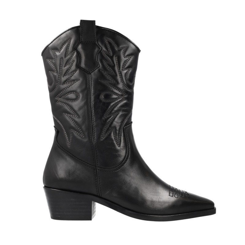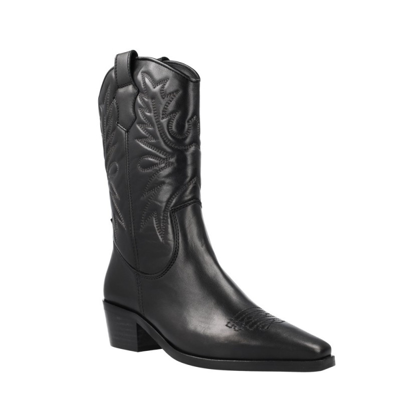 REF: 20301464-40-NEGROLas Vexed 7404 Hayde Botas Tejanas Camperas Mujer representan el equilibrio perfecto entre tradición y tendencia. Inspiradas en el espíritu del lejano oeste, destacan por su diseño refinado en piel negra, con bordados artesanales que aportan textura y personalidad.