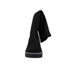 Tejido Elástico "Suede Touch": La caña está confeccionada en un material textil elástico de alta calidad con acabado de ante negro. Este material no solo es suave al tacto, sino que permite un calce fácil (tipo pull-on) sin necesidad de cremalleras, adaptándose a diferentes anchos de tobillo sin oprimir.