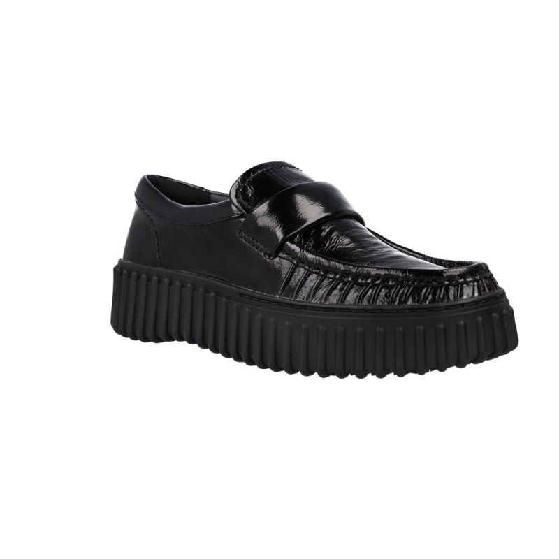 Los Clarks Zapatos Mocasín Mujer Torhill Mocc son el equilibrio perfecto entre estilo clásico y diseño contemporáneo. Este modelo reinventado del tradicional mocasín incorpora detalles modernos como una suela gruesa y un acabado en charol negro que aporta un toque sofisticado. Ideales para mujeres que buscan comodidad sin renunciar a la elegancia, estos zapatos son una opción versátil para cualquier ocasión.