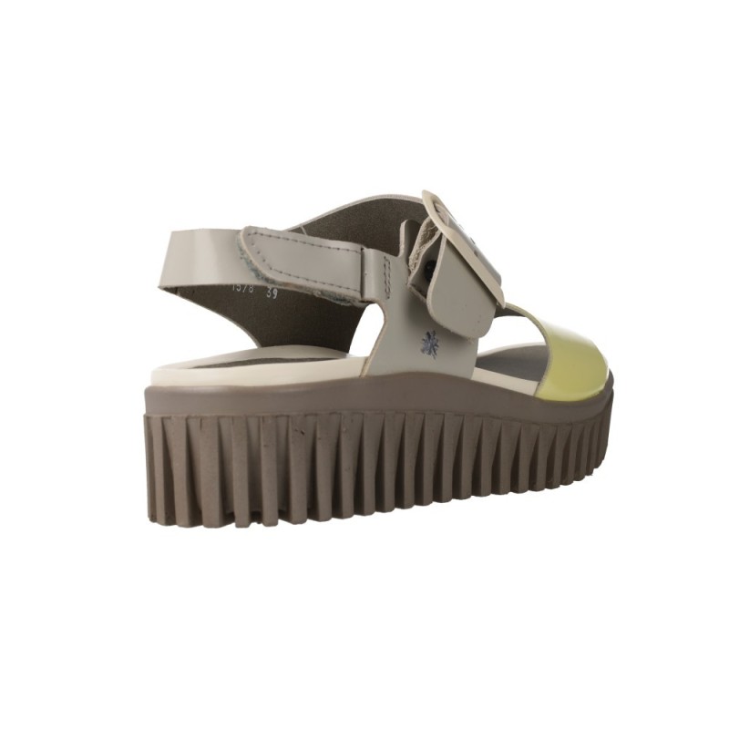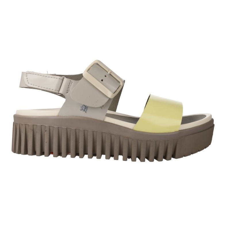 Leurs points forts… Upper bicolore citron/crème, bride avant satinée, grande boucle blanc cassé, semelle track taupe.