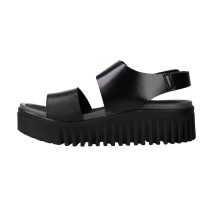 La silhouette reprend la plateforme emblématique des Brighton, mais en noir total la lecture change complètement par rapport à la version honey. Sans contraste de couleur, tout se fond en un ensemble noir affirmé, presque avec une présence de bottine dans une sandale ouverte.
