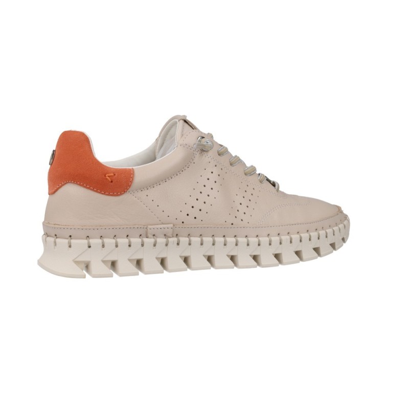 Les baskets femme cuir Carmela 163107 se distinguent par leur semelle crantée au caractère affirmé et leur cuir perforé apportant légèreté et respirabilité.
