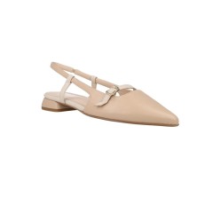 Le Barminton 14001 sono ballerine destalonate (slingback) con tacco basso e confortevole, punta sottile e dettaglio di fibbia laterale. Il colore glass (nude) combina con tutto e allunga visivamente la gamba.