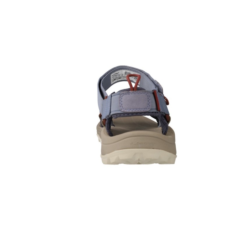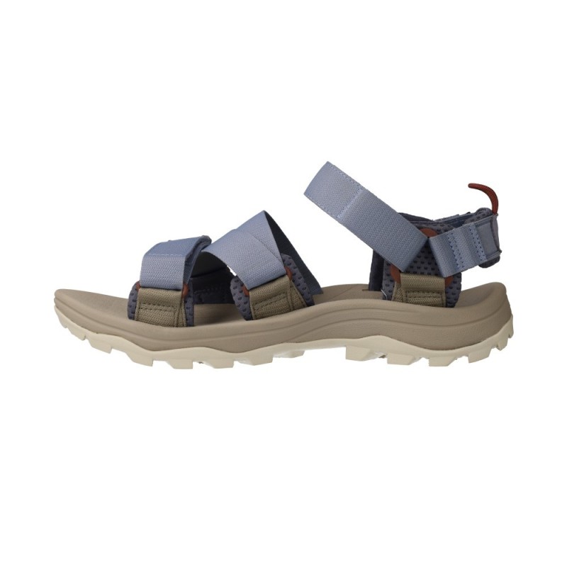 La tomaia combina cinturini in webbing 100% riciclato, mesh traspirante e rinforzi in microfibra. Il risultato è un sandalo resistente, leggero, ad asciugatura rapida e più attento all’ambiente.
